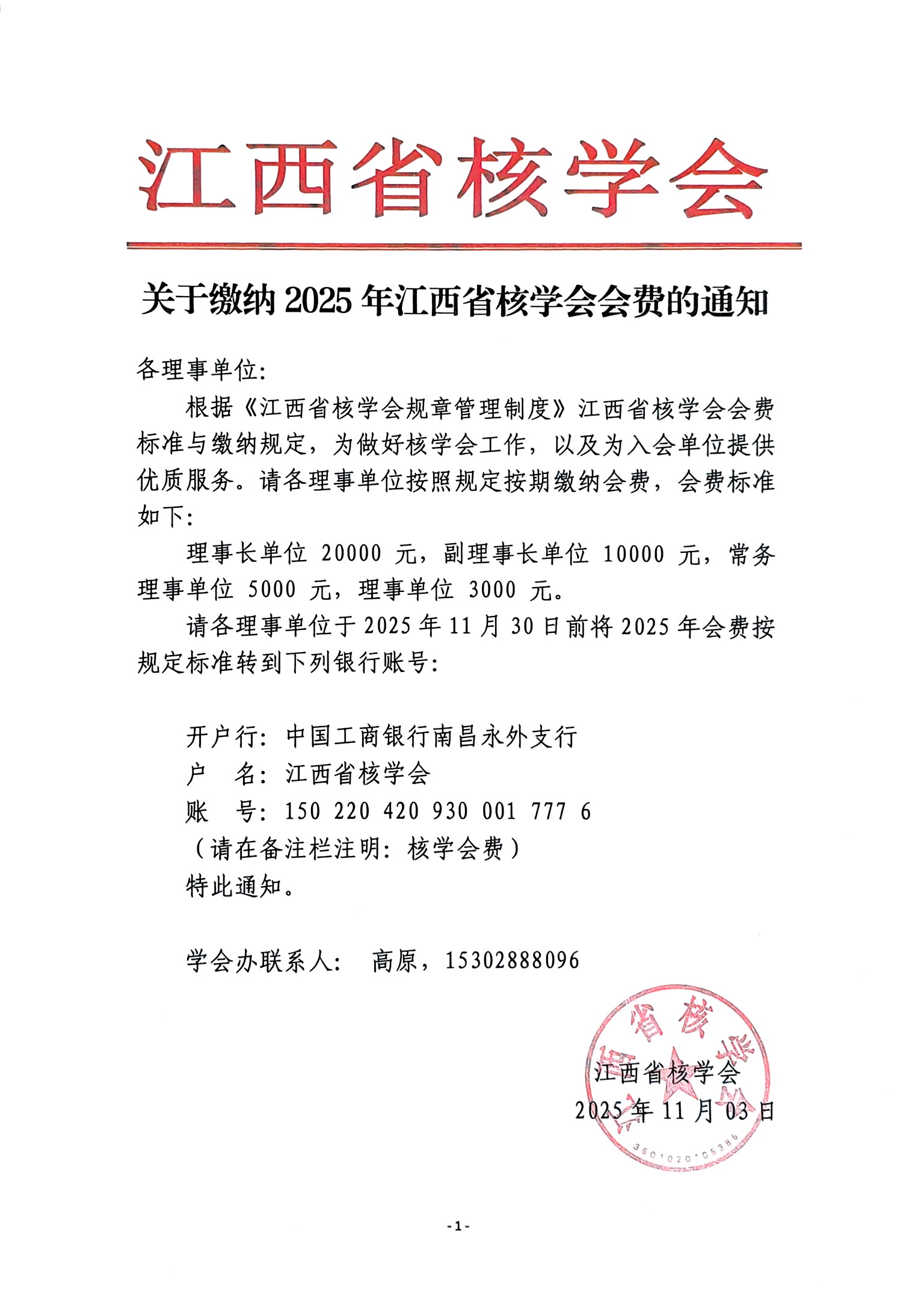 關(guān)于繳納 2025 年江西省核學會會費的通知 發(fā)布時間:2025-11-04 作者: 管理員 閱讀量:2586 上一篇:關(guān)于2025年度江西省核學會專家?guī)焓着鷮<彝七x結(jié)果的公示 下一篇:關(guān)于提交江西省核學會理事調(diào)整申請的通知